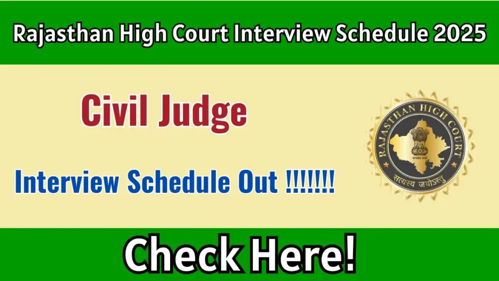 Rajasthan High Court Civil Judge Interview Schedule 2025: The Rajasthan High Court has announced the interview schedule for the Civil Judge recruitment 2025. Candidates who have passed the written examination can view their interview dates, venues, and timings on the official website hcraj.nic.in. The interviews will take place at multiple locations throughout the state.